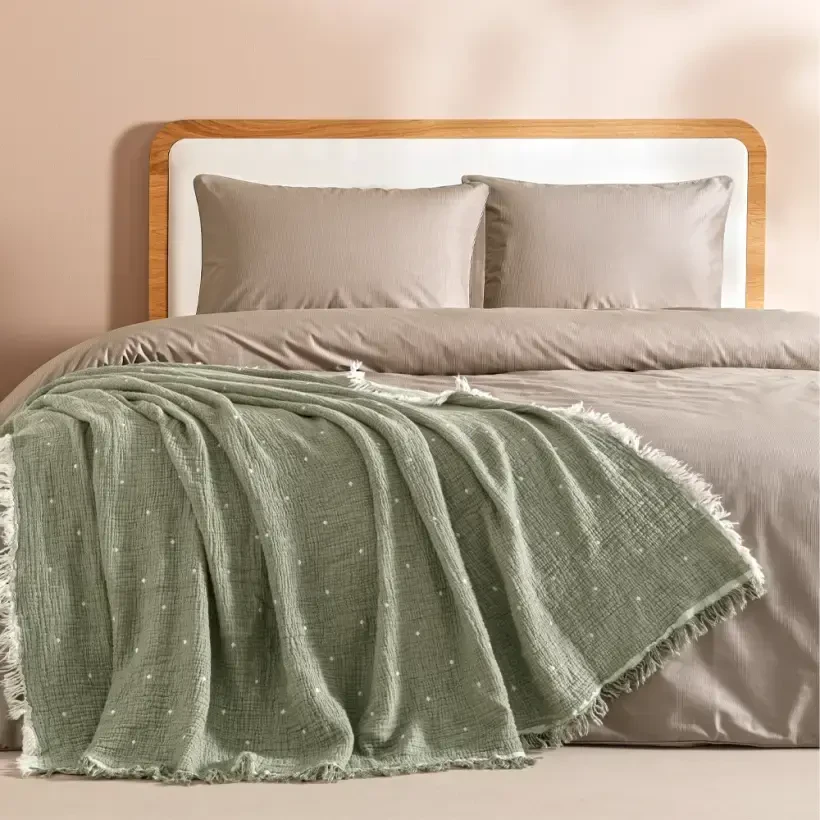 %100 Pamuk Müslin Yatak Örtüsü 220×240 cm Yeşil – Glen Serisi