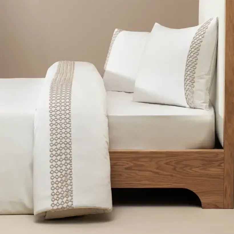 %100 Pamuk Saten Kumaş Nevresim Seti 200×220 cm Beyaz Taş – Manuela Serisi