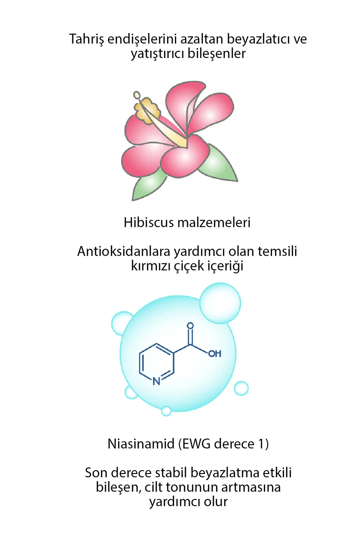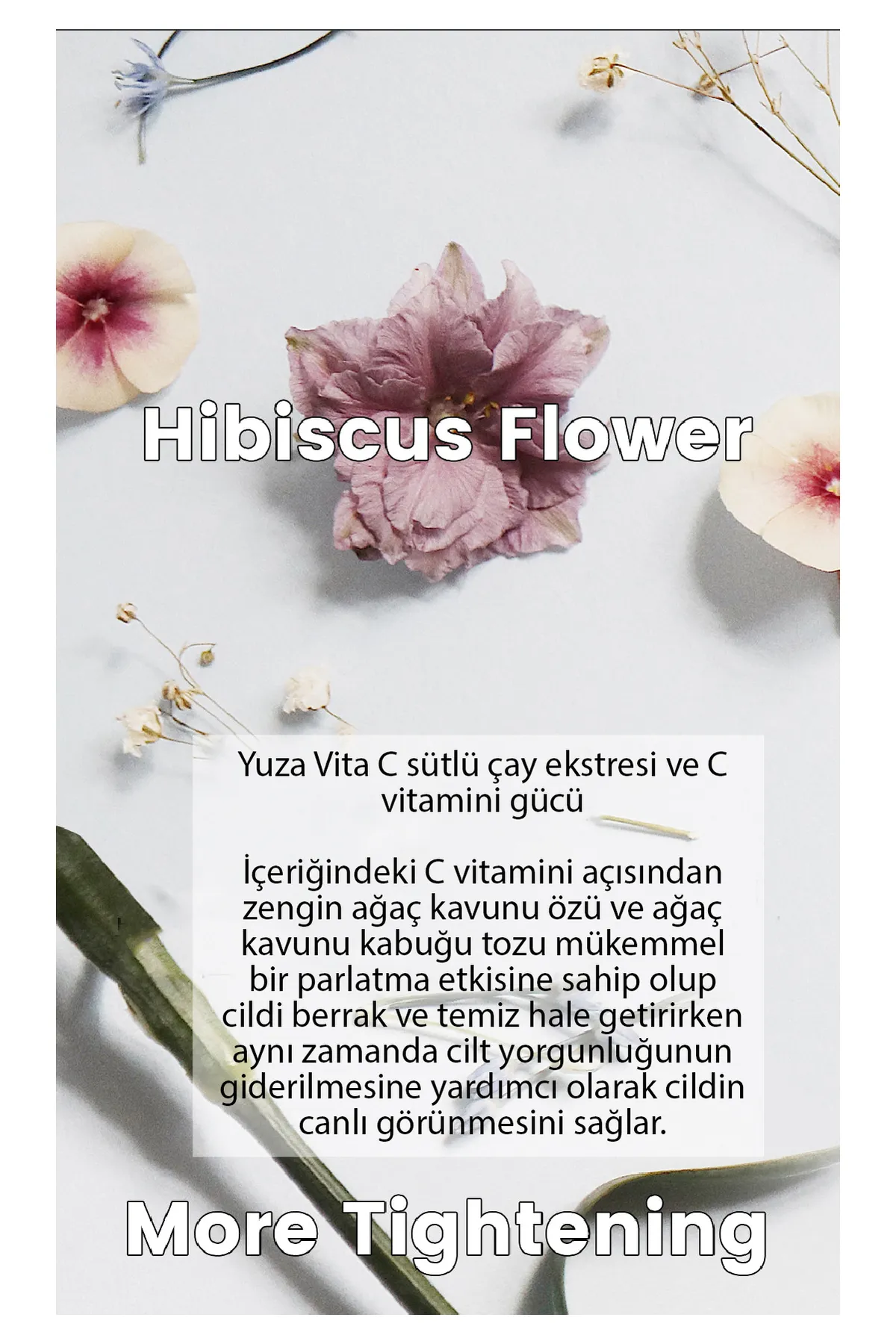 Hibiscus Pore Serum onarıcı bir etkiye sahiptir, yaşlanma belirtilerinden kurtulmaya yardımcı olur ve gençliği uzatır ; Parlatıcı bir etki sağlamak ve cilt dokusunu iyileştirmek için hızla emilir, cildi yumuşak ve nemli bırakır ; Aktif bileşenleri kılcal duvarları güçlendirir, iltihabı ortadan kaldırır, cildi yumuşak ve ipeksi yapar ; Adenozin , kırışıklıkları yumuşatmaya yardımcı olur ; Niasinamid pigmentasyonla savaşır, kendi lipidlerini ve seramidlerini üretmeye yardımcı olur ve kolajen sentezini hızlandırır ; Ultraviyole radyasyona karşı korur, hücrelerde nemi tutar, tahrişi, kızarıklığı ortadan kaldırır ve hasarlı dokuları onarır ; Mevsim geçiş dönemlerinde, cildinizin yoğun bakıma ihtiyaç duyduğu zaman, cilt sorunlarınızın arttığı ve cildinizin canlılığını kaybettiği durumlarda, günlük cilt bakım rutininize ek olarak, temiz cilde gece yatmadan uygulayın ; ayrıca tahrişi ve kızarıklığı önler ; Kırışıklıkları yumuşatır, cildin sıkılığını ve elastikiyetini artırır ; Doğal içeriklerle cildin daha yumuşak bir dokuya kavuşmasını sağlar ; Niasinamid içeriği sayesinde gözenekleri küçültür, cildi aydınlatır ; Sarkma ile mücadele eder, cilt tonunu, elastikiyetini ve gençliğini geri kazandırır ; Hassas ciltler dahil tüm cilt tipleri için uygundur ; NASIL KULLANILIR: Sabah ve akşam, temizlenmiş ve toniklenmiş cilde kremden önce parmak uçlarınızla bir kaç damla uygulayıp cilde emdirin ; 30 gr ;